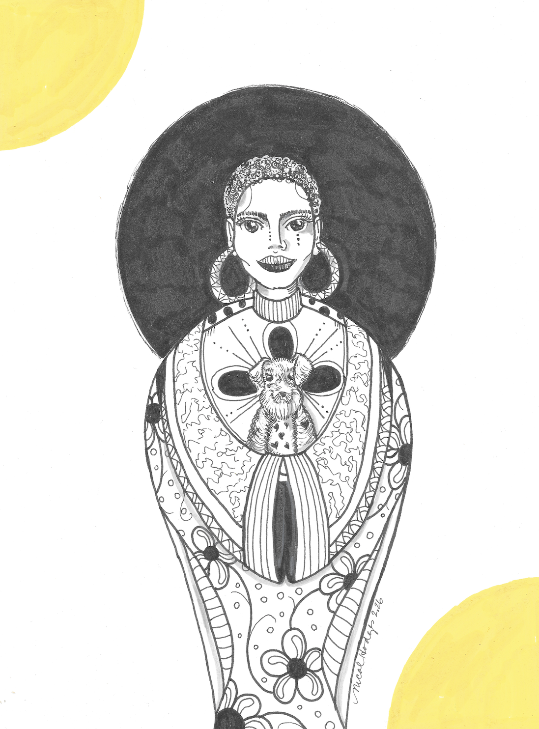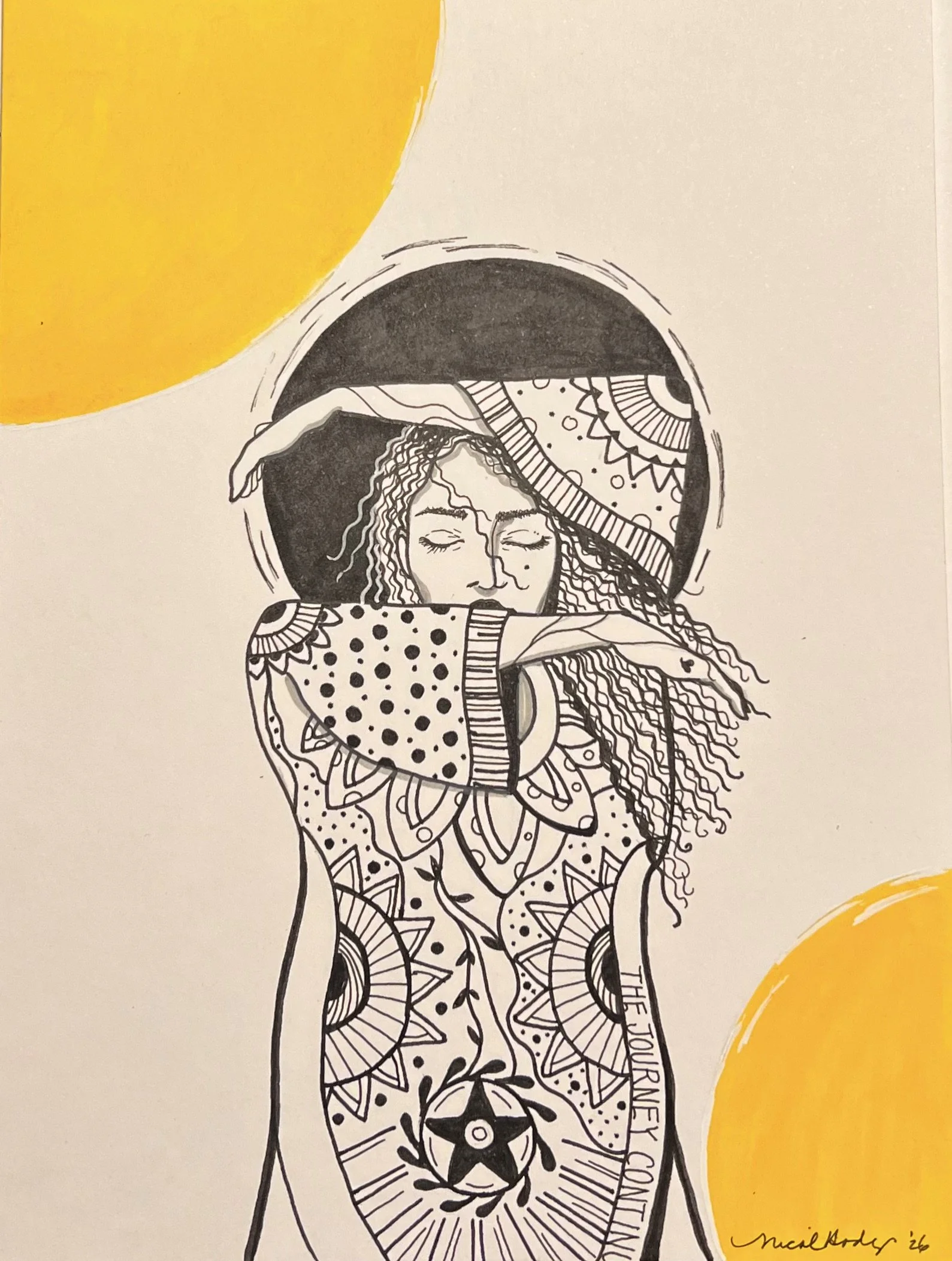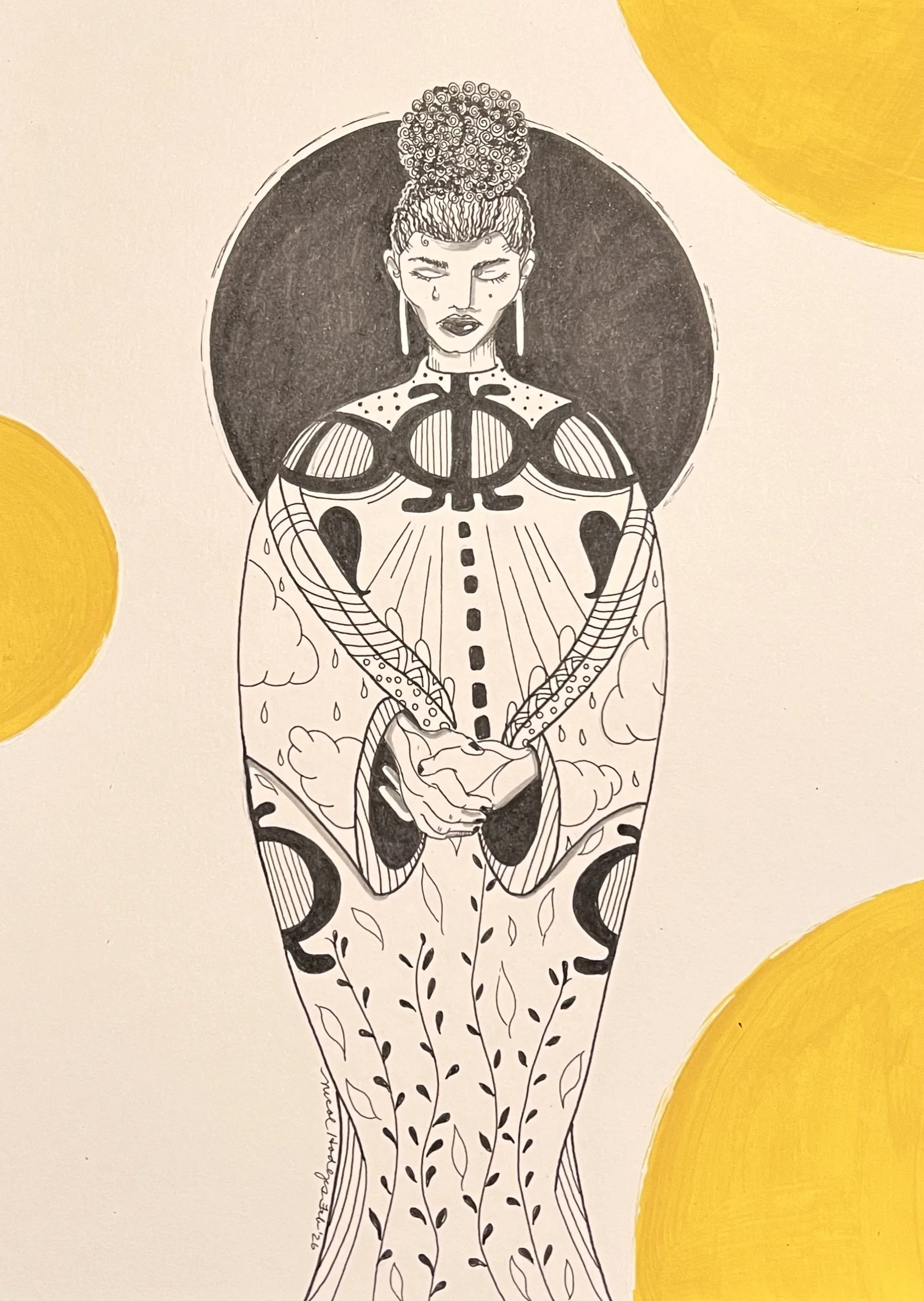 Here, I’m sharing pieces inspired by women I’ve met who’ve impacted me in one way or another. The bursts of yellow represent my own personal light—the light I carry with me every single day. It’s brighter than I thought, and realizing that makes it dangerously exciting to see what’s coming next.