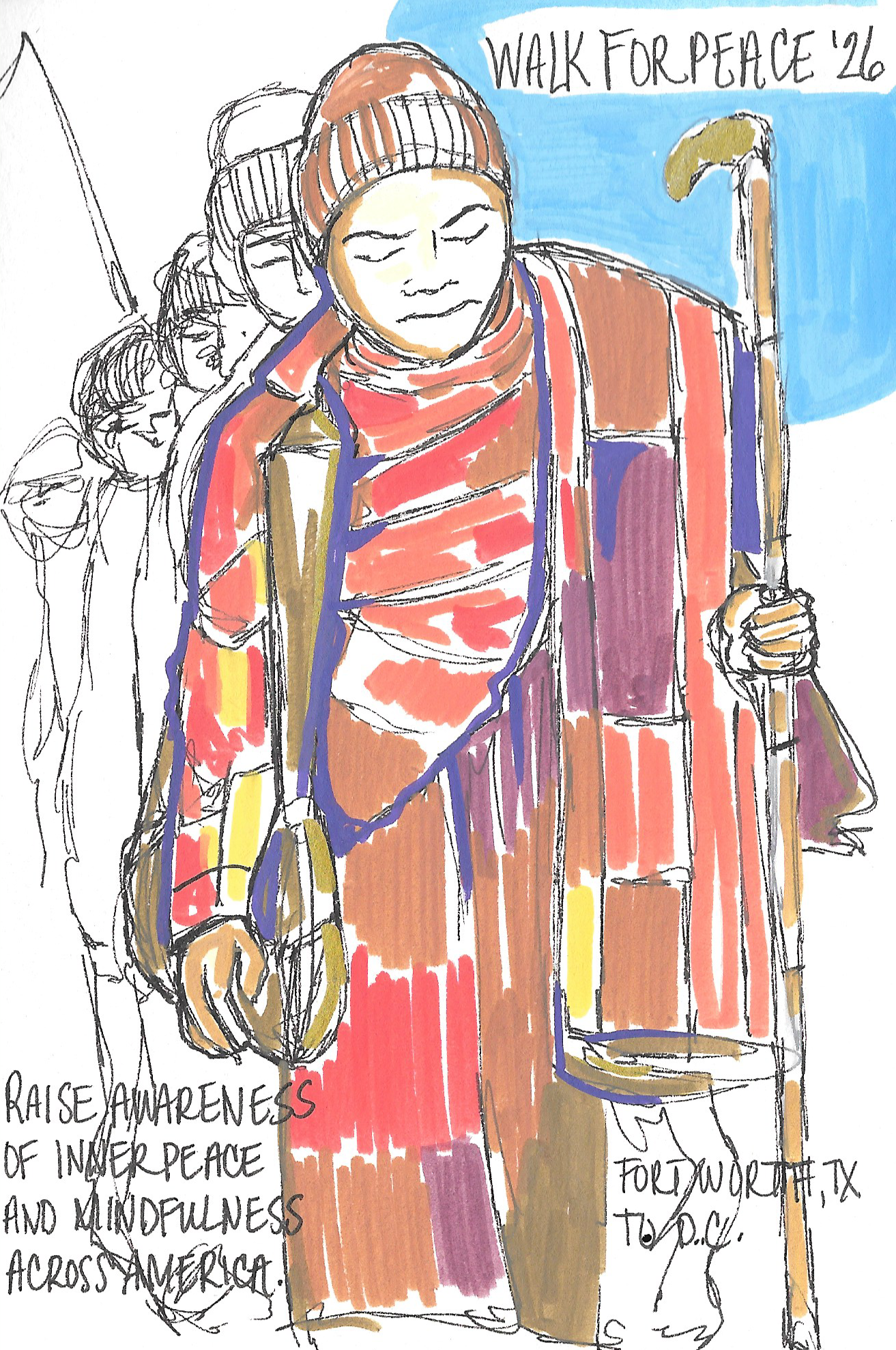 To keep growing, I’ve been drawing every night, even if it’s just a small scribble here and there. I sketched a few of my heroes, like James Baldwin, Muhammad Ali, Nina Simone, and Toni Morrison. I’ve also been following the Theravada monks who walked from Fort Worth to Washington, D.C. in hopes of spreading peace and understanding. I was blessed to see them in person in Alexandria, VA, before they entered D.C., and I was absolutely amazed. So, of course, I sketched them too.